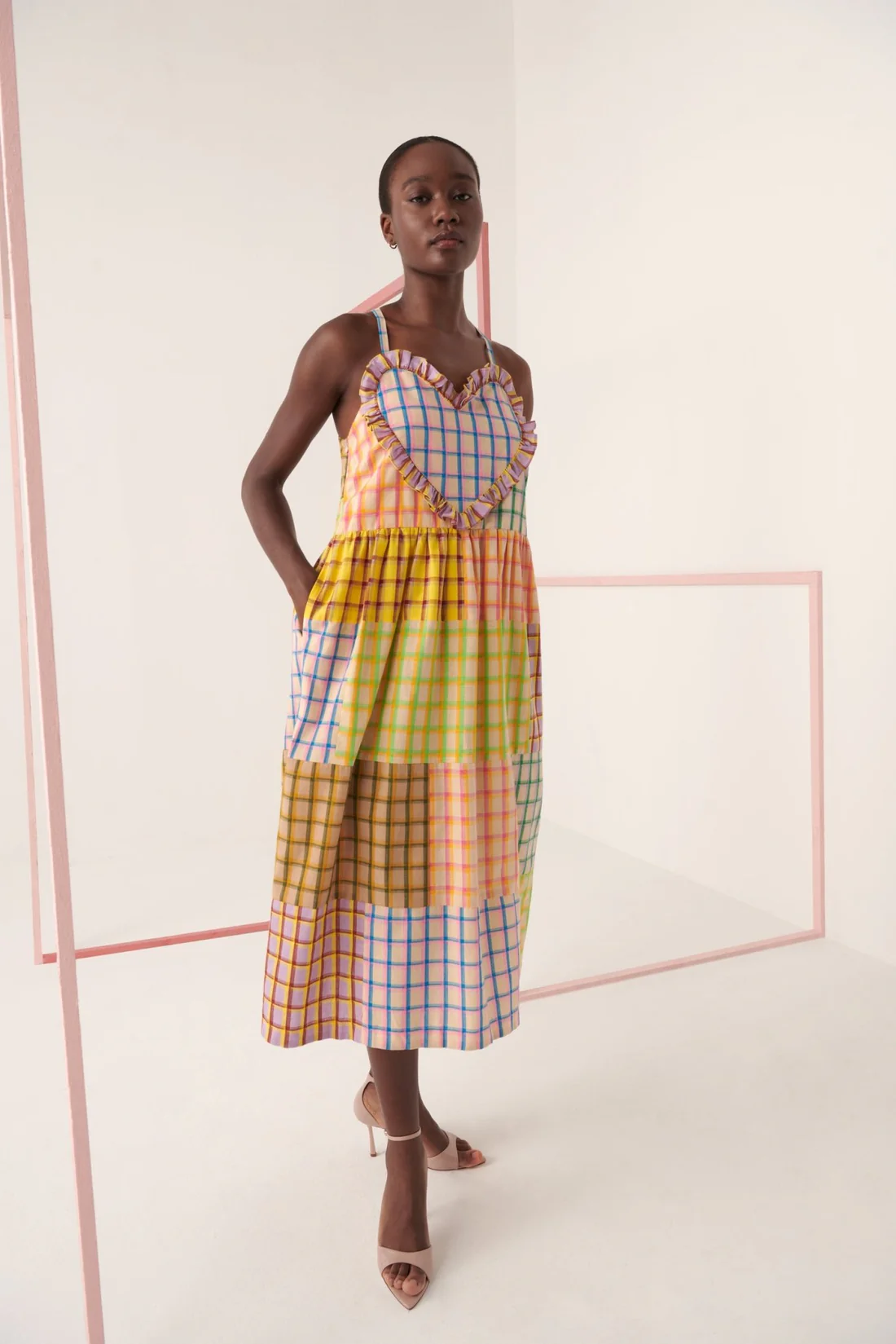 With a gingham patchwork pattern design, the check version of the Tahaa dress is equally stunning. With its signature heart shaped bodice with ruffled trim, spaghetti straps and long, flowing skirt.