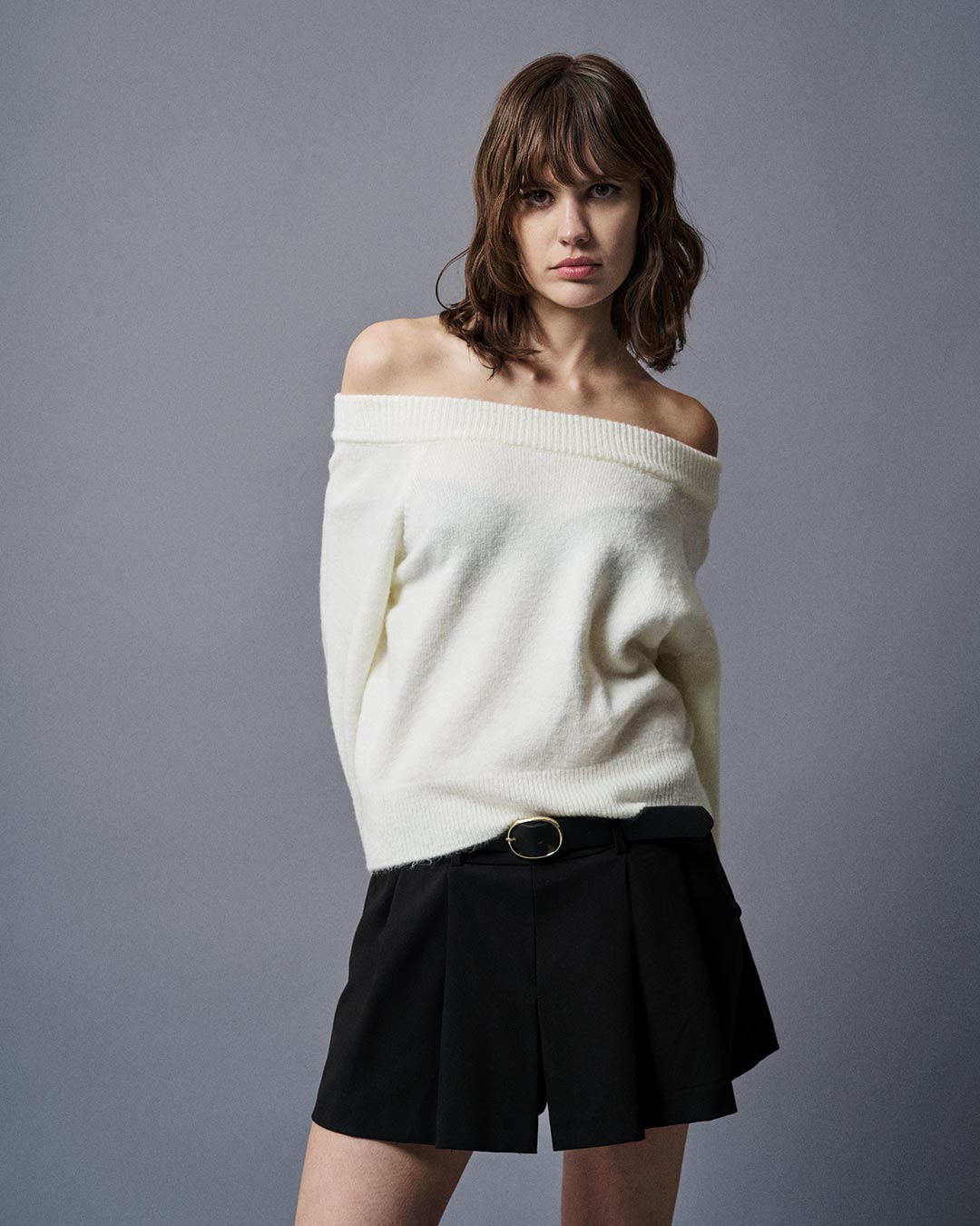 Off Shoulder Cropped Sweater Ivory TAILOR MADE